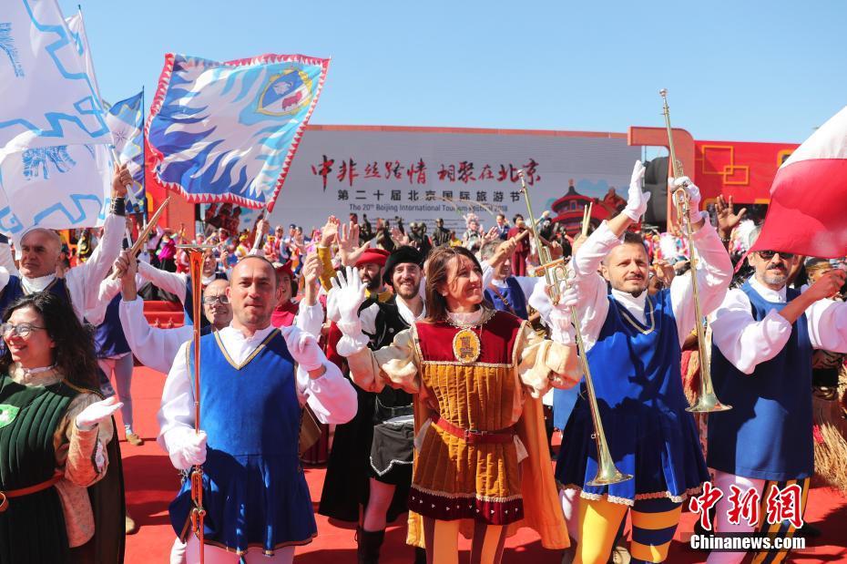 10月1日,由北京市旅游发展委员会主办的第二十届北京国际旅游节在北京奥林匹克公园庆典广场拉开帷幕。开幕式邀请“一带一路”沿线代表国家、非洲国家以及来自北京地区的共30支表演团体汇集在奥林匹克公园景观大道,为观众带来了一场精彩的演出。本届北京国际旅游节以“中非丝路情 相聚在北京”为主题,除举办开幕式盛装行进表演外,还在门头沟区永定楼广场、昌平区乐多港以及延庆区八达岭国际会展中心分别设置了3个分会场,邀请国内外演出团队到场演出,从10月1日持续到10月4日。中新社记者 盛佳鹏 摄