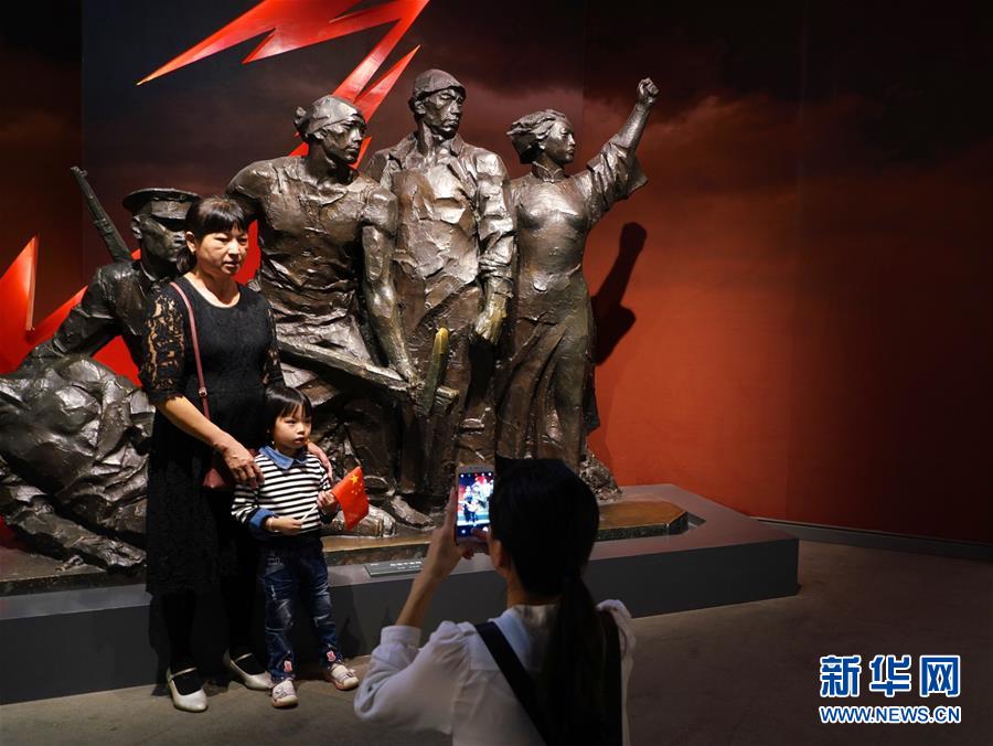 10月1日,游客在江西南昌八一起义纪念馆内参观留影。 当日是国庆节,全国各地的人们用各种方式欢度节日。 新华社记者 胡晨欢 摄