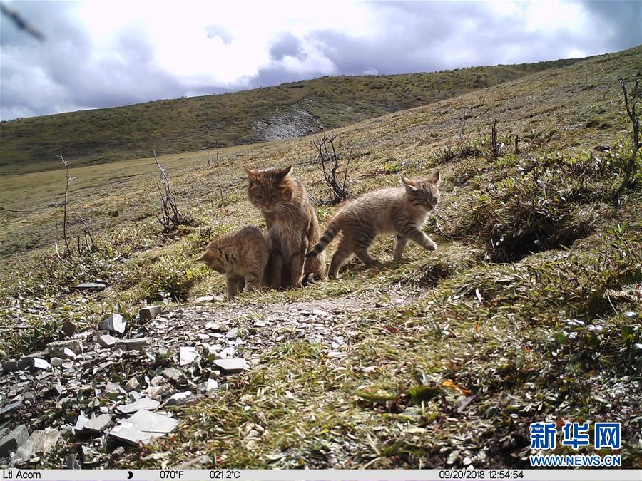 这是科研人员通过红外相机拍摄的荒漠猫抚育幼崽的画面(9月20日摄)。