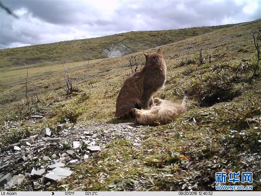 这是科研人员通过红外相机拍摄的荒漠猫抚育幼崽的画面(9月20日摄)。 新华社发