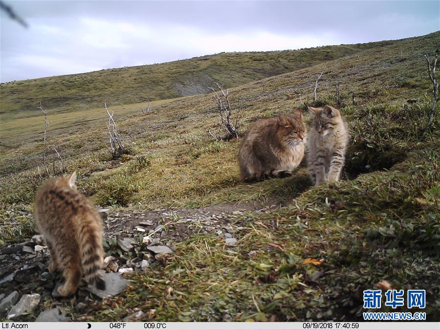 这是科研人员通过红外相机拍摄的荒漠猫抚育幼崽的画面(9月19日摄)。 新华社发
