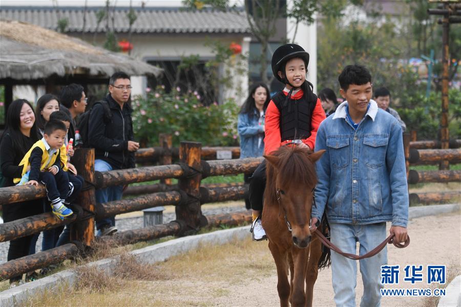 10月21日,小朋友在湖州市吴兴区妙西镇原乡小镇体验骑马项目。 新华社记者 黄宗治 摄
