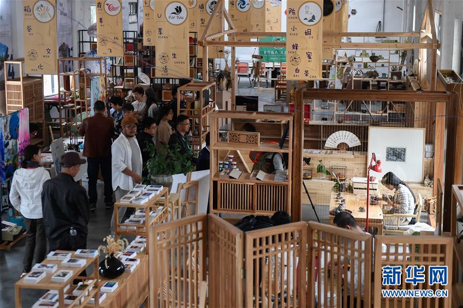 10月21日,游客在湖州市吴兴区妙西镇龙山村“谷堆乡创”参观乡村匠人的现场创作。 新华社记者 黄宗治 摄