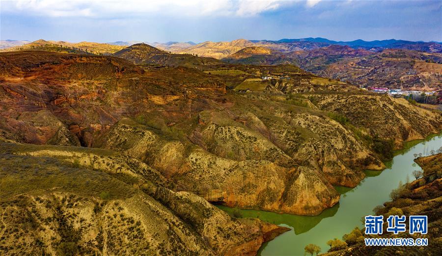 10月21日无人机拍摄的黄昏时分的王家湾丹霞地貌。 新华社记者陶明摄