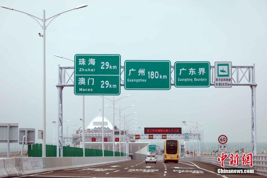 港珠澳大桥正式通车 跨境巴士在桥上行驶