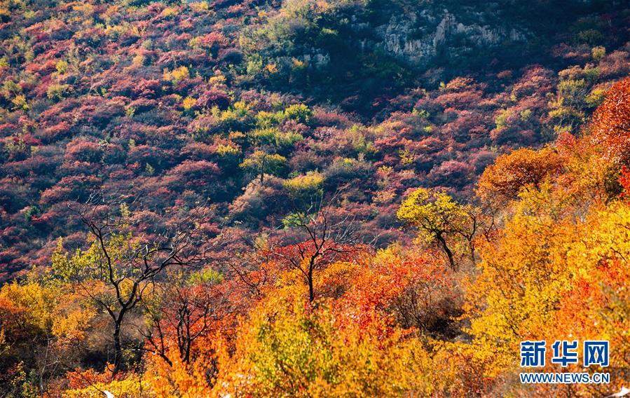 10月24日拍摄的河北省武安市贺进镇后临河村景色。 金秋时节,位于太行山区的河北省武安市贺进镇后临河村的红叶进入观赏佳期。 新华社记者 王晓 摄