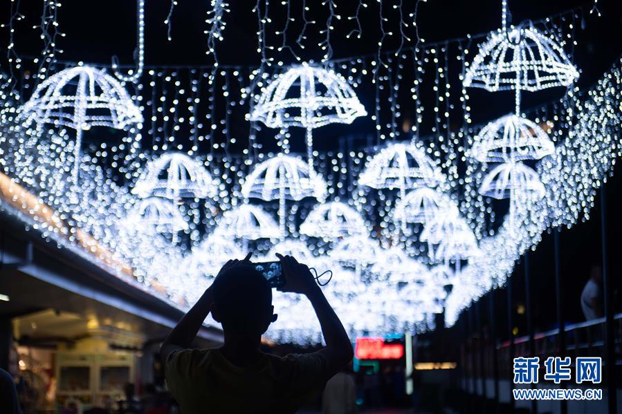 12月2日,游人在欣赏光影节灯饰。 新华社记者 张金加 摄