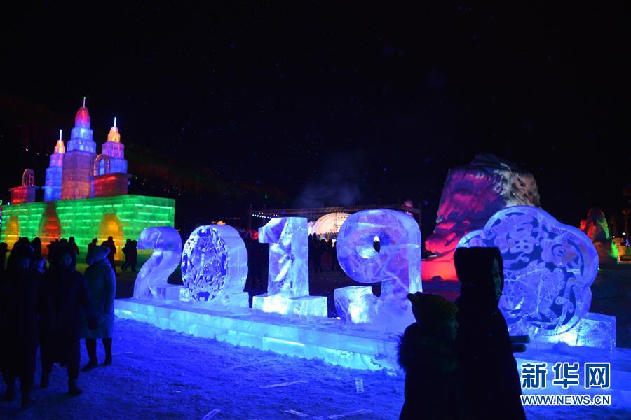 12月21日,游客在冰雪节开幕式上参观冰雕。 新华社记者 邹予摄