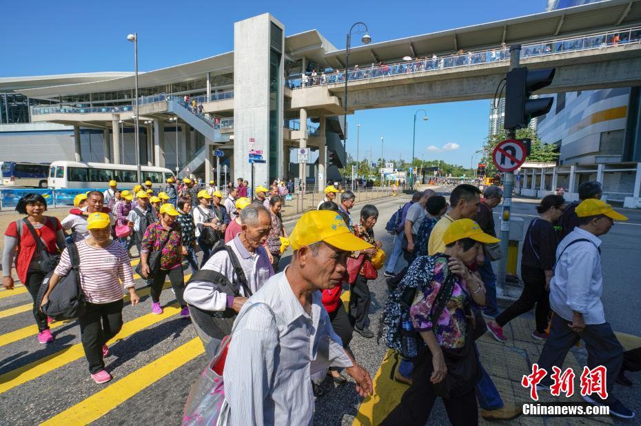 2018年11月6日,经港珠澳大桥抵达香港的广东中山游客来到东涌市中心,准备搭车前往大屿山天坛大佛等地旅游。 中新社记者 张炜 摄