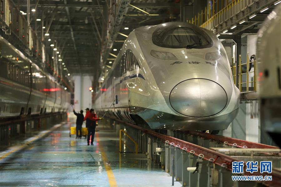 1月3日,贵阳北动车所工作人员对动车组进行巡检和保洁,为铁路调图做好安全保障。 记者从中国铁路总公司获悉,自2019年1月5日起,全国铁路将实施新的列车运行图。 新华社发(吴吉斌 摄)
