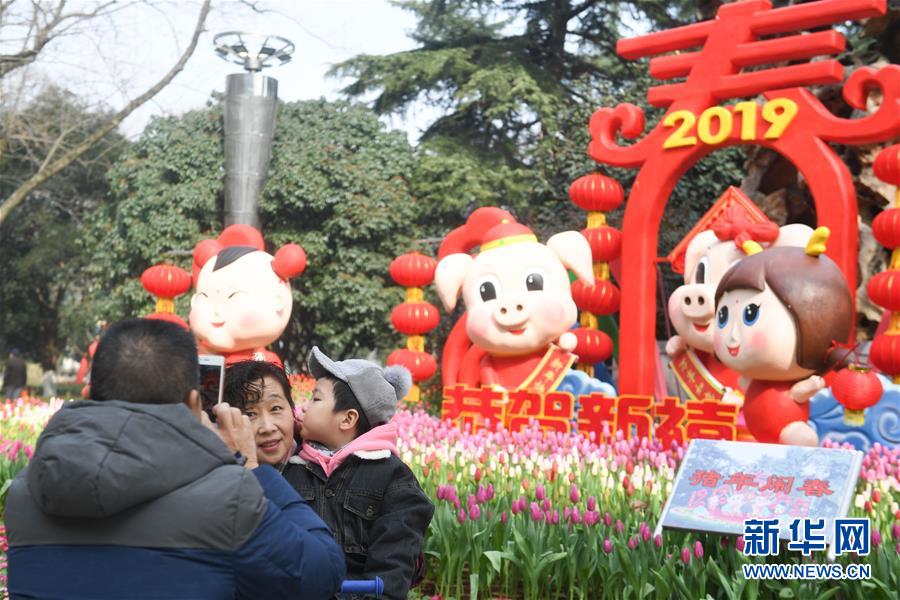 当日是农历大年初一,湖北省武汉市解放公园郁金香主题花卉展吸引众多游客前来参观,欢度新春佳节。