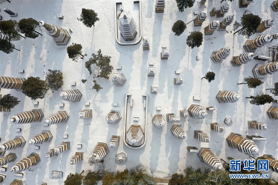 这是少林寺塔林(1月10日无人机拍摄)。 当瑞雪降临,祖国大好河山万里银装,一片素裹,宛如仙境。新华社记者带您从天空的视角领略雪国的风光。 新华社记者 冯大鹏 摄