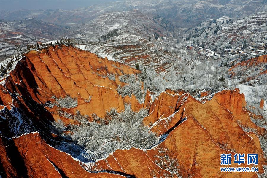 甘肃漳县万亩梯田:雪后白茫茫 犹如水墨画