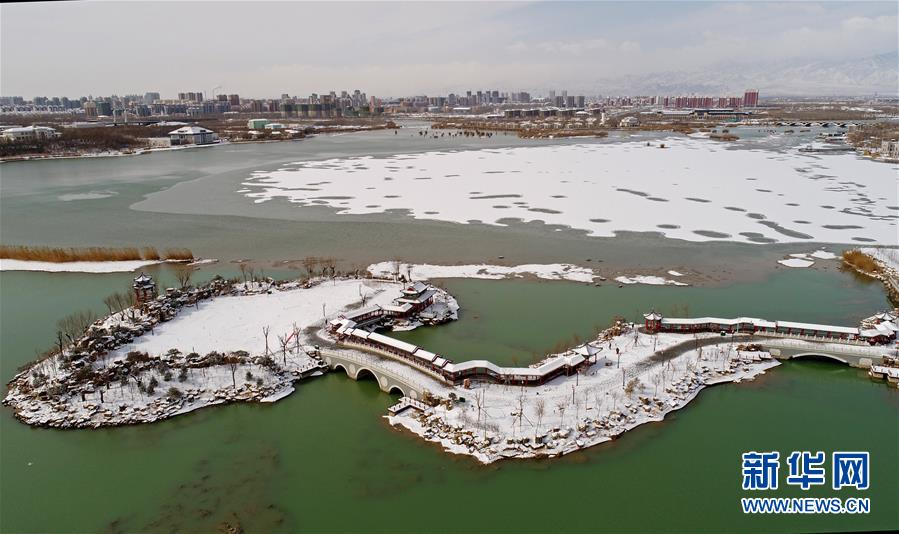 这是宁夏银川市阅海湾商务区附近雪景(2017年2月21日无人机拍摄)。 当瑞雪降临,祖国大好河山万里银装,一片素裹,宛如仙境。新华社记者带您从天空的视角领略雪国的风光。 新华社记者 王鹏 摄