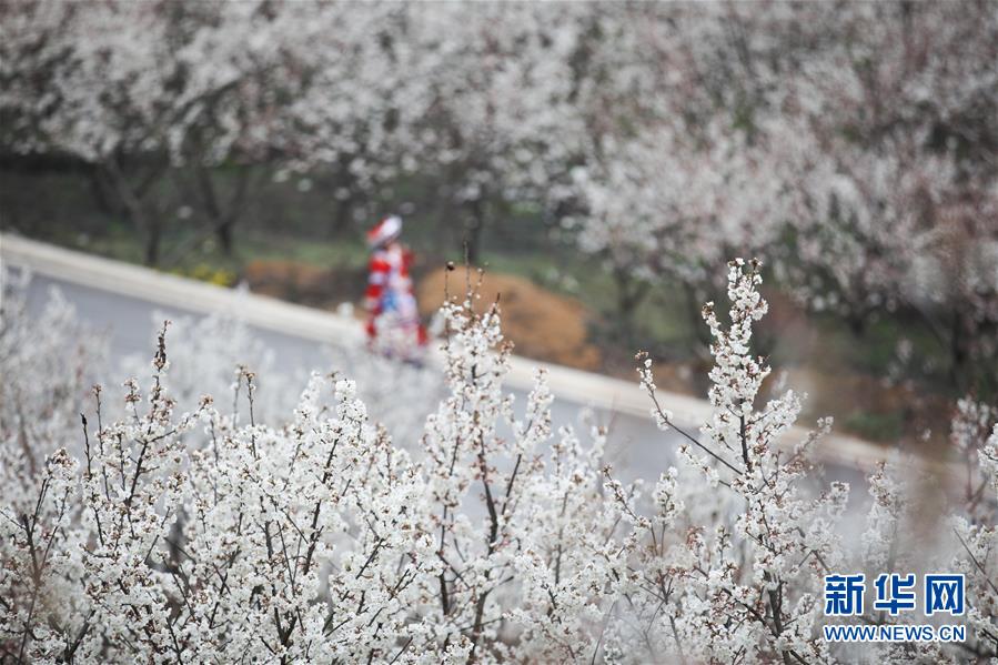 近日,贵州省大方县猫场镇的樱桃花盛开,吸引游客前来观赏。猫场镇近年来引导农民调整农业产业结构,发展樱桃等水果种植,并结合樱桃花观赏等开展旅游活动,发展乡村旅游业。 新华社发(罗大富 摄)
