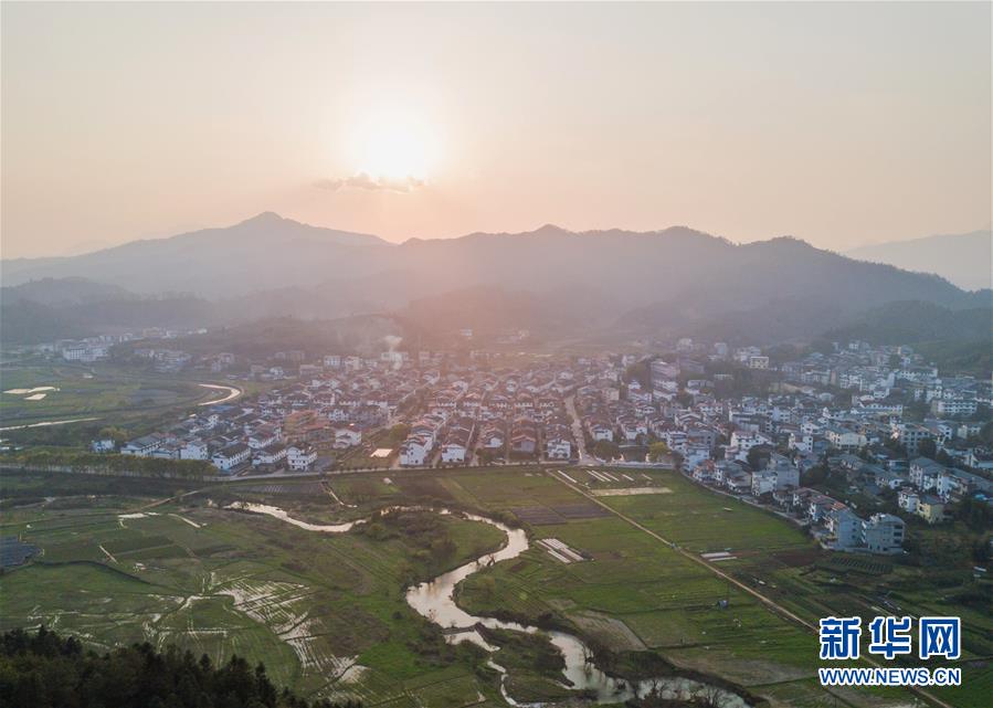 福建省武夷山市星村镇的田园城镇风光(3月11日无人机拍摄)。 近日,福建武夷山烟雨初歇、天气放晴、气温回升,青山绿水间时有云雾缭绕,宛若仙境。近年来,福建省武夷山市坚持生态优先,推进绿色发展,让“高颜值”山水释放出越来越多“生态红利”。 新华社记者 宋为伟 摄