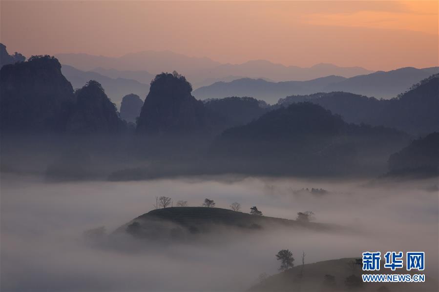 这是福建省武夷山风景名胜区齐云峰附近的云海日出景观(3月13日摄)。 近日,福建武夷山烟雨初歇、天气放晴、气温回升,青山绿水间时有云雾缭绕,宛若仙境。近年来,福建省武夷山市坚持生态优先,推进绿色发展,让“高颜值”山水释放出越来越多“生态红利”。 新华社发(陈颖 摄)