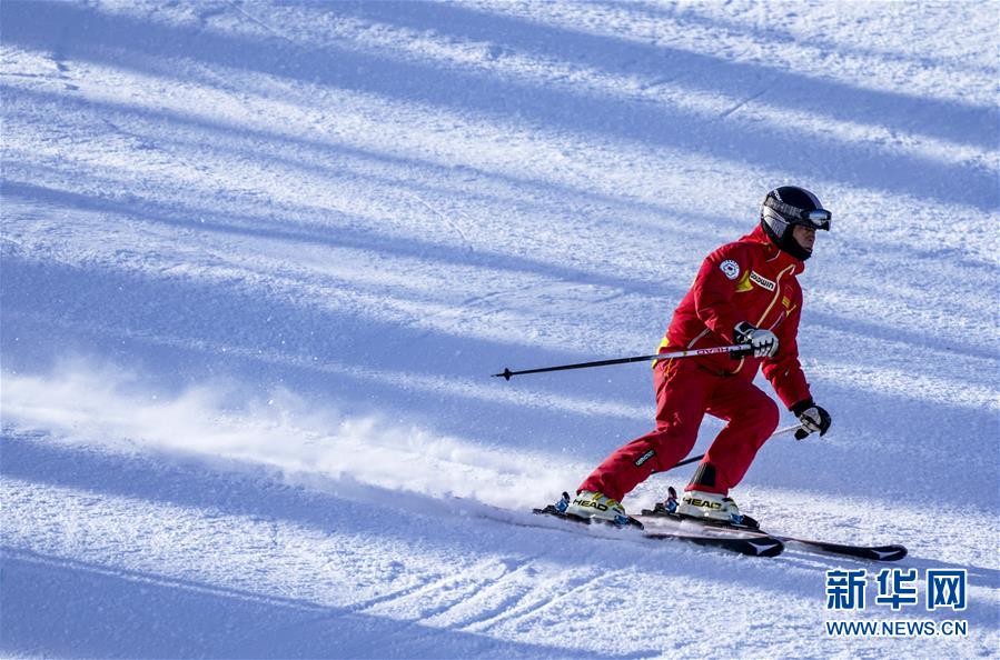一位滑雪爱好者在乌鲁木齐市南郊的丝绸之路国际滑雪场滑雪(2月8日摄)。 新华社记者 赵戈 摄