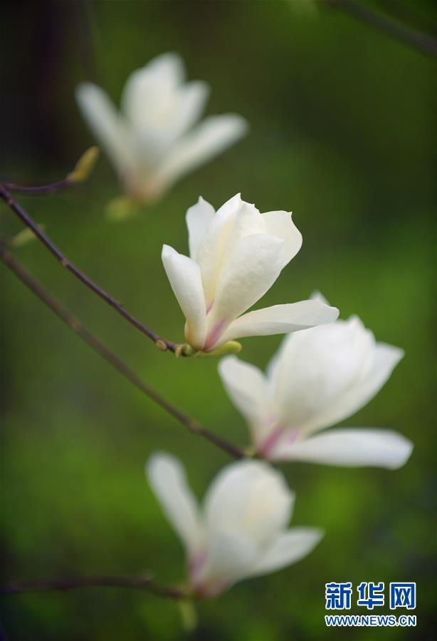 这是3月15日在湖北省恩施土家族苗族自治州宣恩县贡水河畔带状公园拍摄的玉兰花。 随着气温回升,各地春花绽放,春意盎然。 新华社发(王俊 摄)