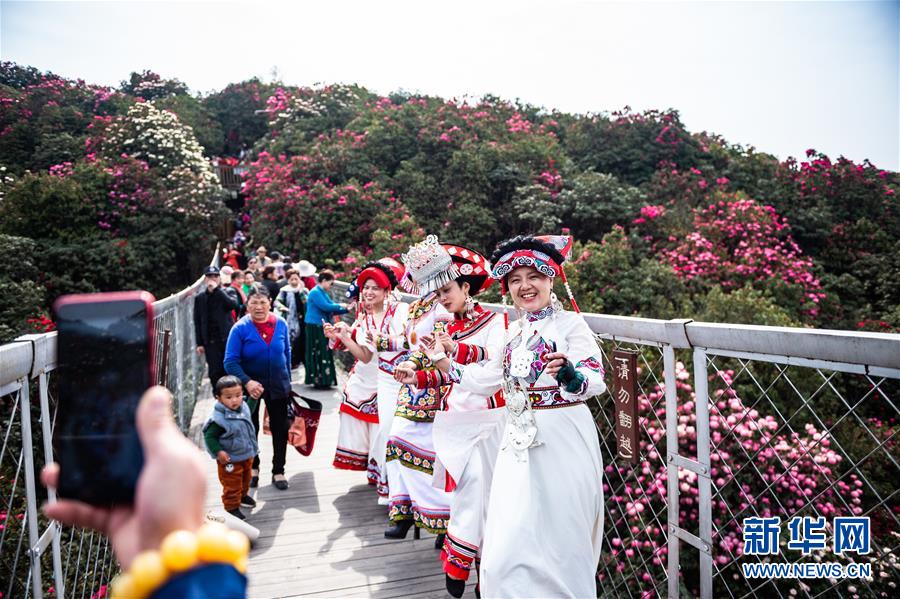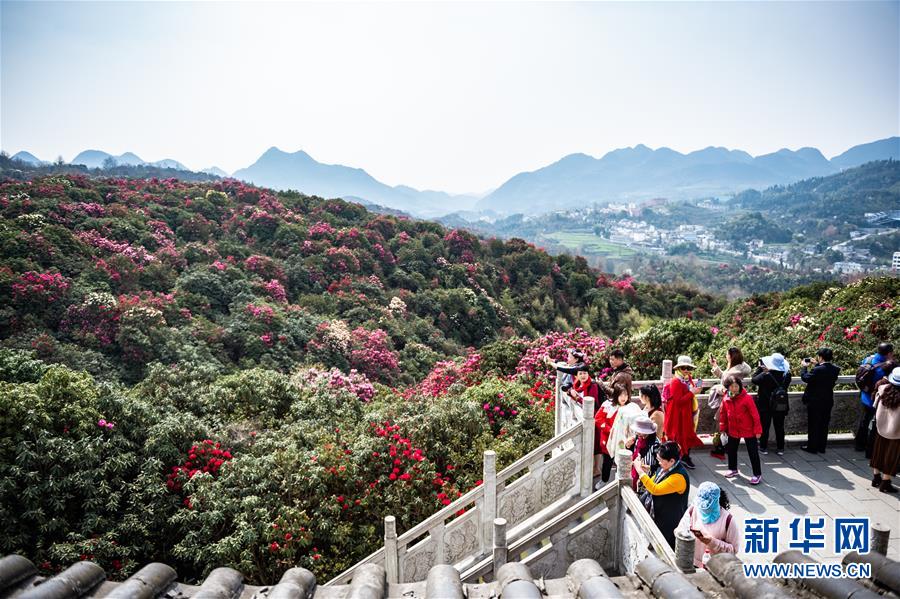3月28日,游客在贵州省毕节市百里杜鹃景区游玩。新华社记者 陶亮 摄