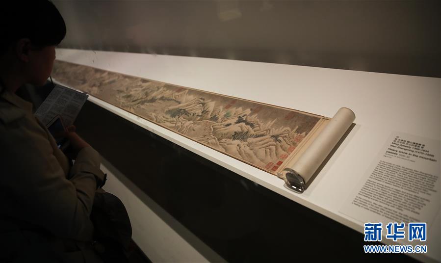 3月31日,在澳大利亚悉尼,观众在台北故宫博物院珍宝展上观看明代文征明绘《关山积雪图》。一场主题为“天地人”的台北故宫博物院珍宝展正在澳大利亚悉尼展出,这也是台北故宫博物院的珍藏首次在南半球展出。新华社记者 白雪飞 摄