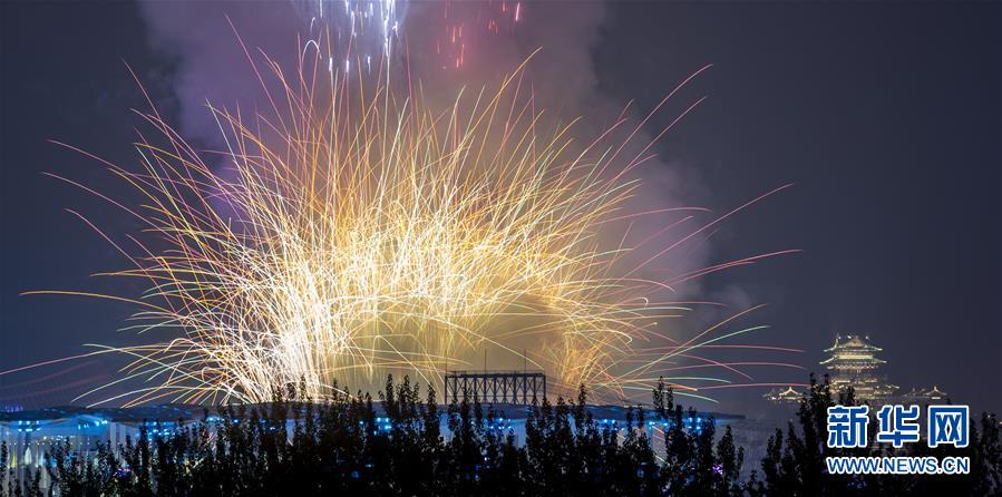 4月28日,2019年中国北京世界园艺博览会开幕式在北京延庆举行。这是开幕式焰火表演。 新华社记者 鞠焕宗 摄