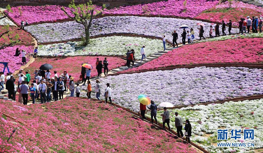 5月2日,游人在河北省唐山市迁西县雨花谷景区赏花游览。 “五一”小长假期间,各地人们以不同方式放松心情、欢度假日。 新华社发(王爱军 摄)