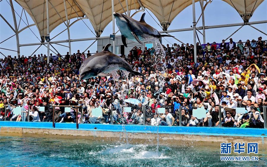 5月2日,游人在位于河北省秦皇岛市海港区的新澳海底世界观看海豚表演。 “五一”小长假期间,各地人们以不同方式放松心情、欢度假日。 新华社发(曹建雄 摄)