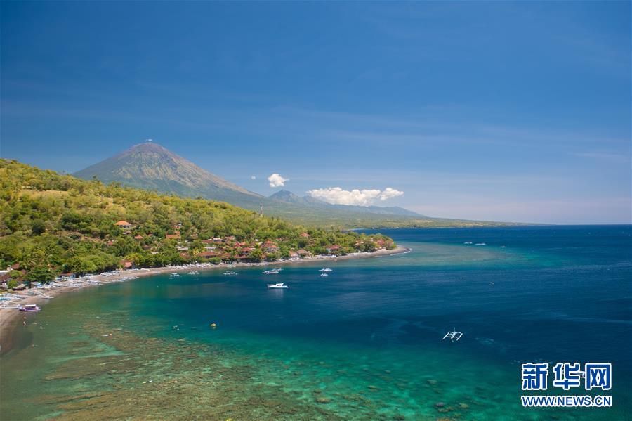 这是2016年9月10日拍摄的印度尼西亚巴厘岛的艾美湾和阿贡火山。 新华社记者 杜宇 摄
