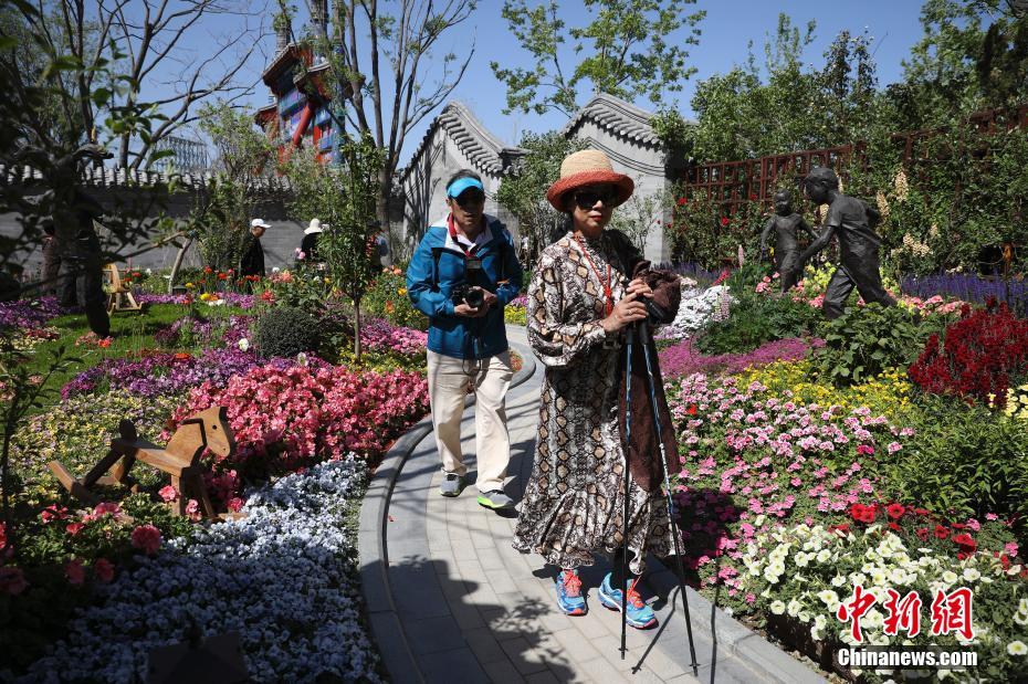 5月13日,游客在北京世园会北京园内游览参观。北京世园会自开园以来,人气异常火爆,客流居高不下。截至当日傍晚,累计参观人数接近80万人次。中新社记者 赵隽 摄