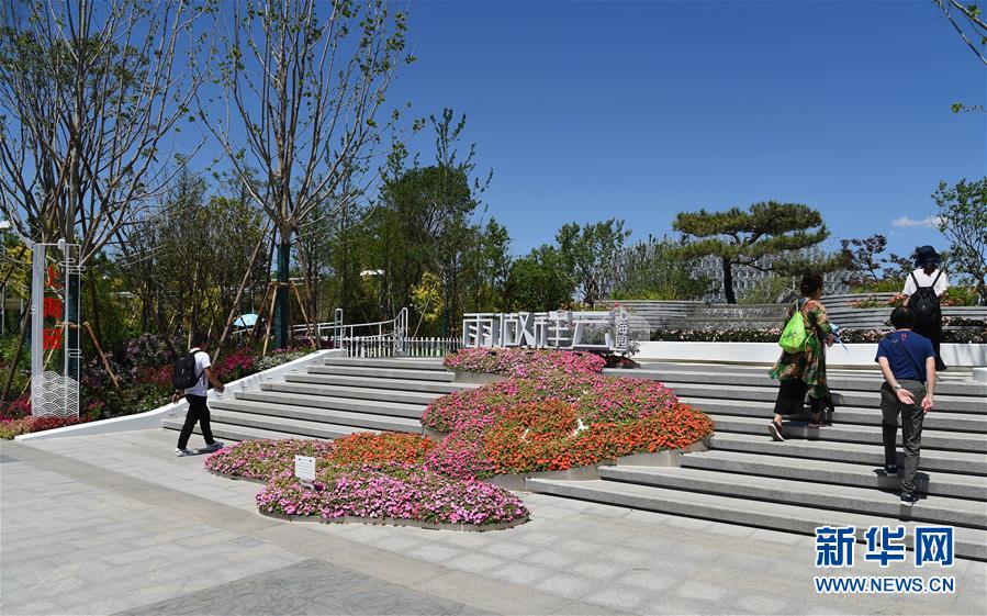 5月27日,游客在北京世园会上海园参观。 当日,2019年中国北京世界园艺博览会“上海日”活动在北京世园会园区举行。 新华社发(任超摄)
