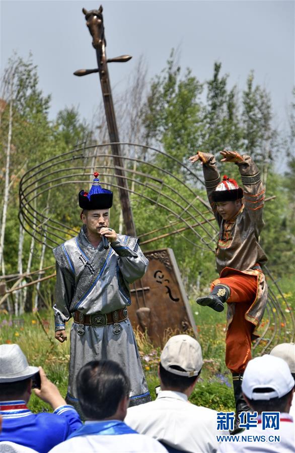 6月12日,来自内蒙古阿拉善盟的乌兰牧骑演员为游客表演蒙古族歌舞。 当日,2019年中国北京世界园艺博览会“阿拉善盟暨额济纳旗主题日”活动在北京世园会园区举行。 新华社记者 李欣 摄
