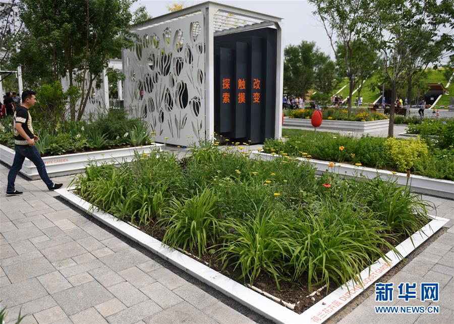 6月17日,参观者在北京世园会荷兰展园内参观。新华社记者 张晨霖 摄