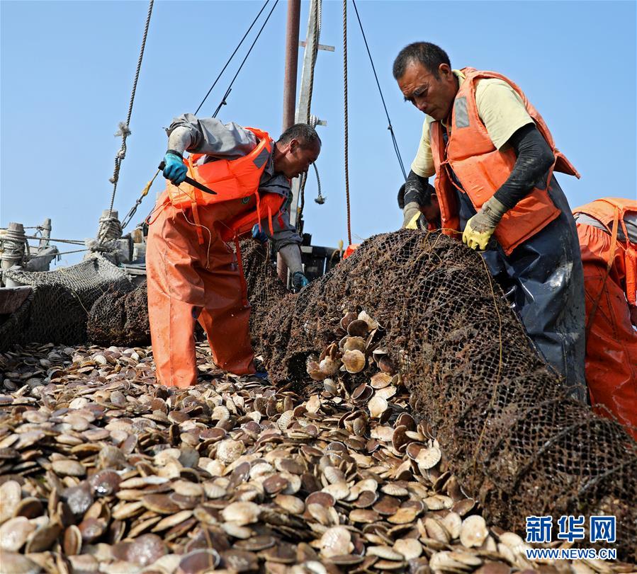 渔民在海洋牧场打捞扇贝(7月8日摄)。新华社记者 姚剑锋 摄