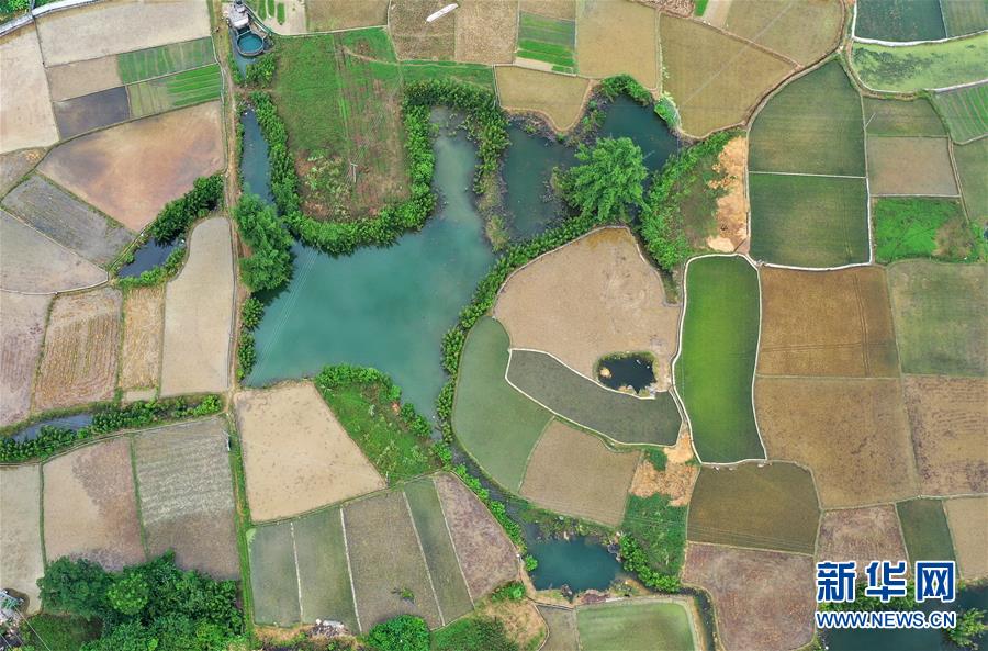 这是7月23日无人机拍摄的广西都安瑶族自治县澄江镇的田园风光。 当日是农历二十四节气中的大暑,广西都安瑶族自治县澄江镇田园如画,风景宜人。 新华社记者 陆波岸 摄