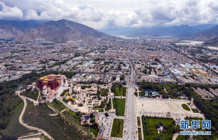 鸟瞰拉萨古城(8月10日无人机拍摄)。新华社记者 李鑫 摄