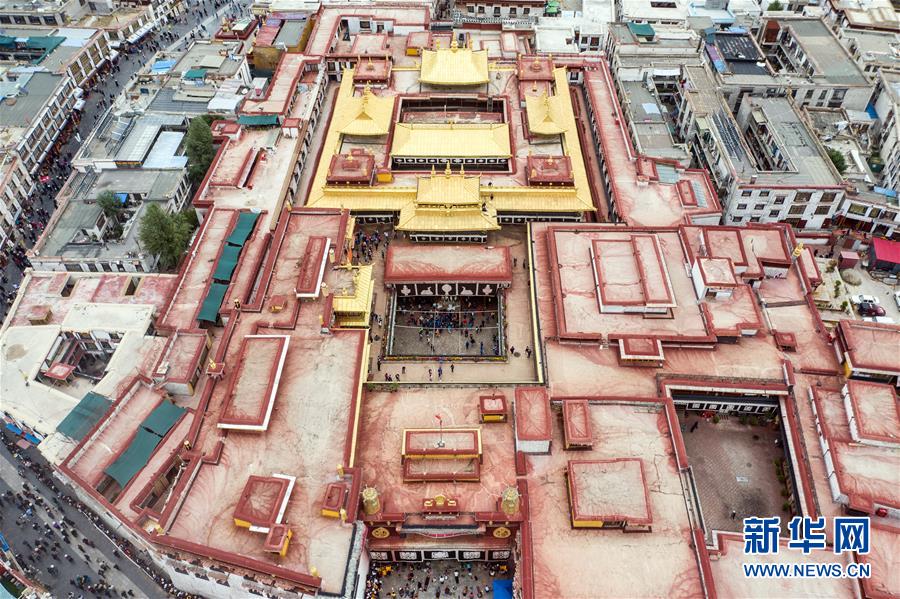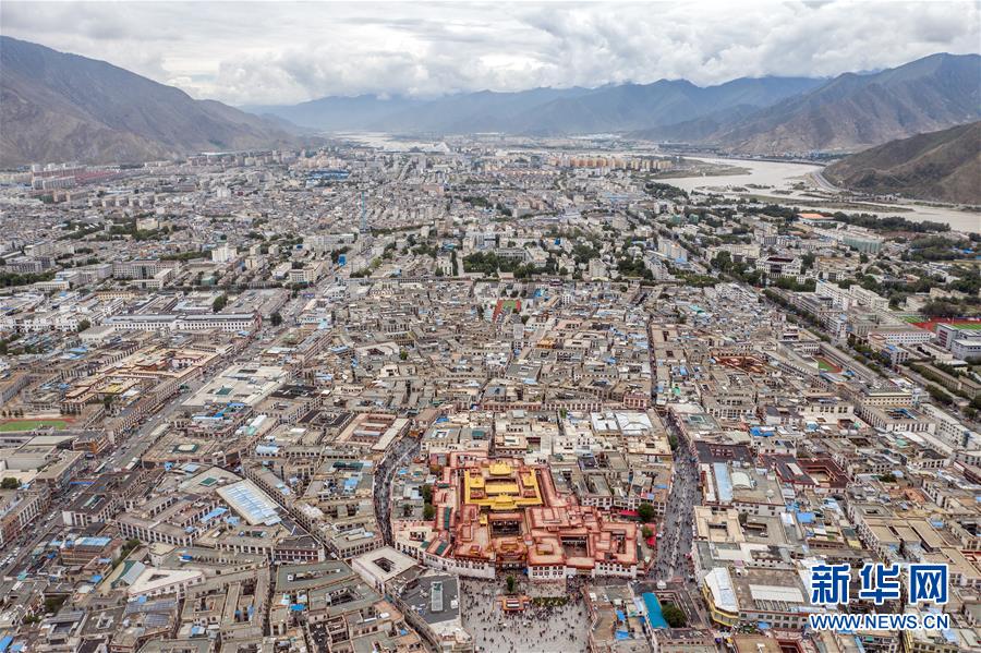 8月10日无人机拍摄的大昭寺。新华社记者 李鑫 摄