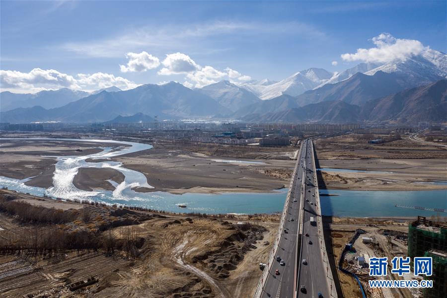 鸟瞰拉萨纳金大桥(4月3日无人机拍摄)。新华社记者 晋美多吉 摄