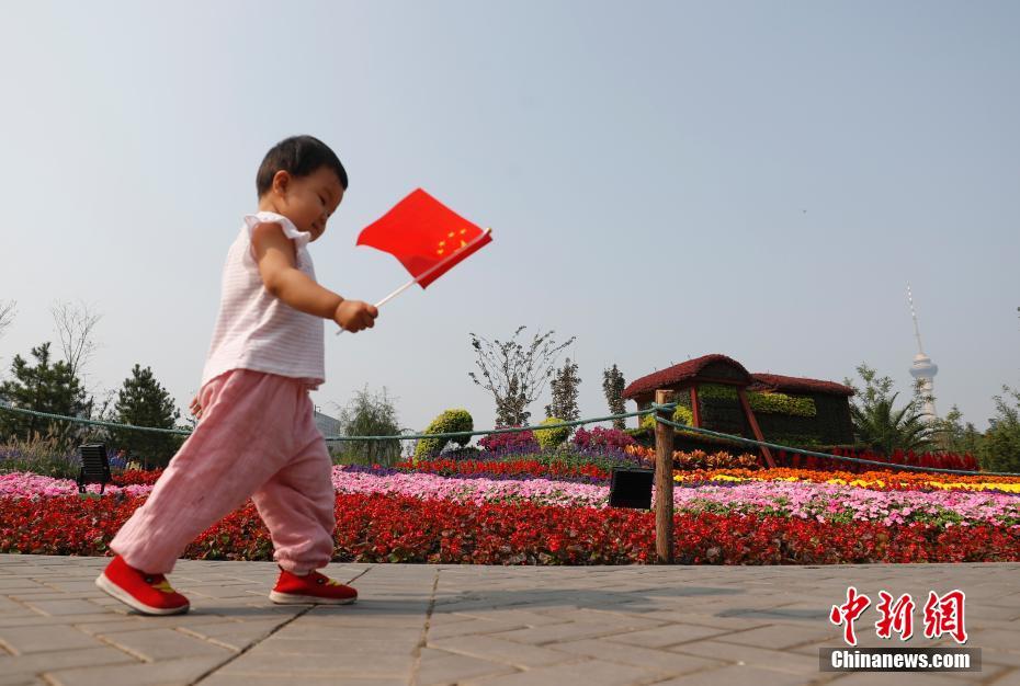 10月2日,国庆假期第二天,北京玉渊潭公园为庆祝新中国成立70周年华诞,开展“文明实践新风尚——心语颂祖国”主题活动。志愿者向参与活动的游客讲解国庆节、国旗、国徽、国歌的知识,带领大家唱响祖国、守护国旗、致敬国徽。图为手拿国旗的儿童在公园游玩。中新社记者 杜洋 摄