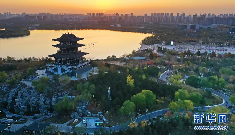 这是11月11日无人机拍摄的河北省唐山市南湖景区。 新华社记者 牟宇 摄