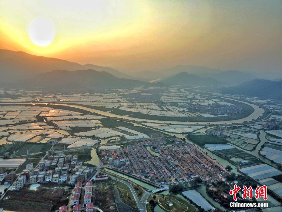 11月中旬,空中鸟瞰福建漳州埭美古村落,山水环绕美如画。埭美古村是“闽南红砖建筑群”的典范,位于九龙江南溪河畔、沈海高速公路漳州港出口两公里处,环抱于鸡笼山、大帽山、峨山之中。王东明 摄