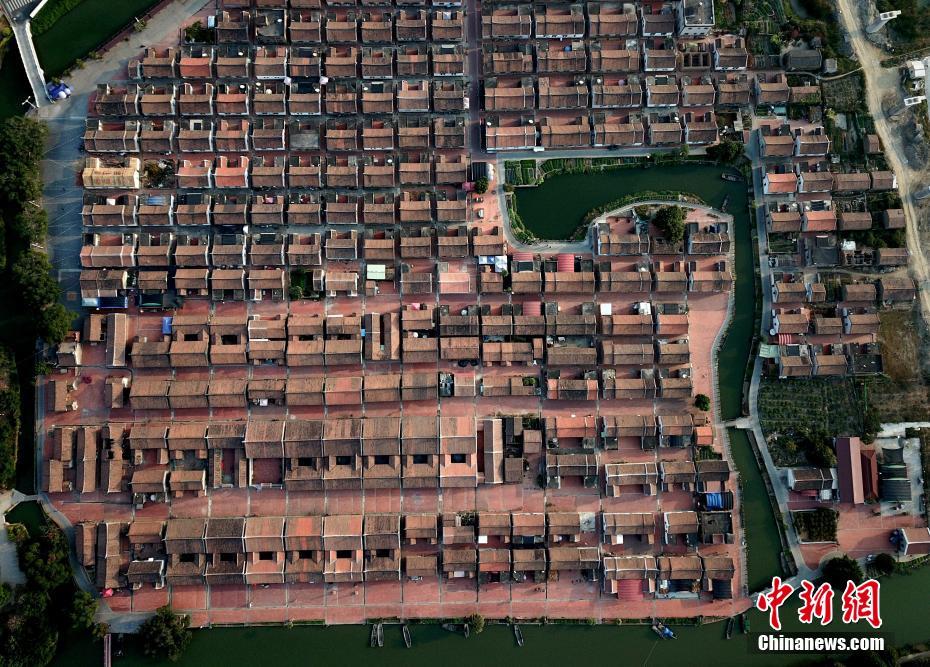 鸟瞰漳州埭美古村落 山水环绕美如画