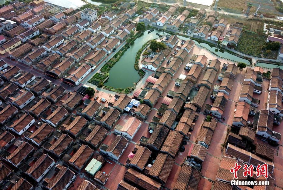 鸟瞰漳州埭美古村落 山水环绕美如画