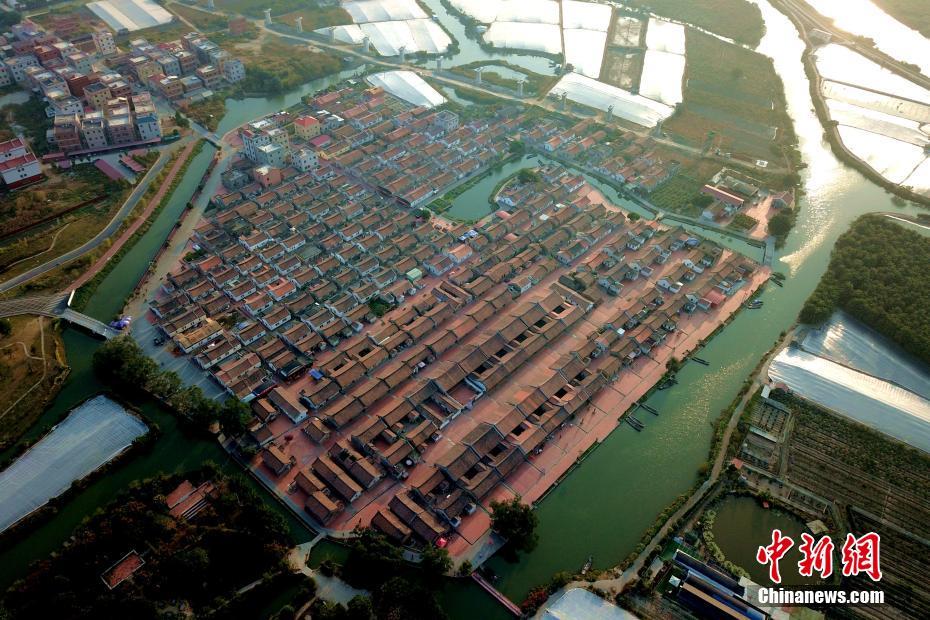 鸟瞰漳州埭美古村落 山水环绕美如画