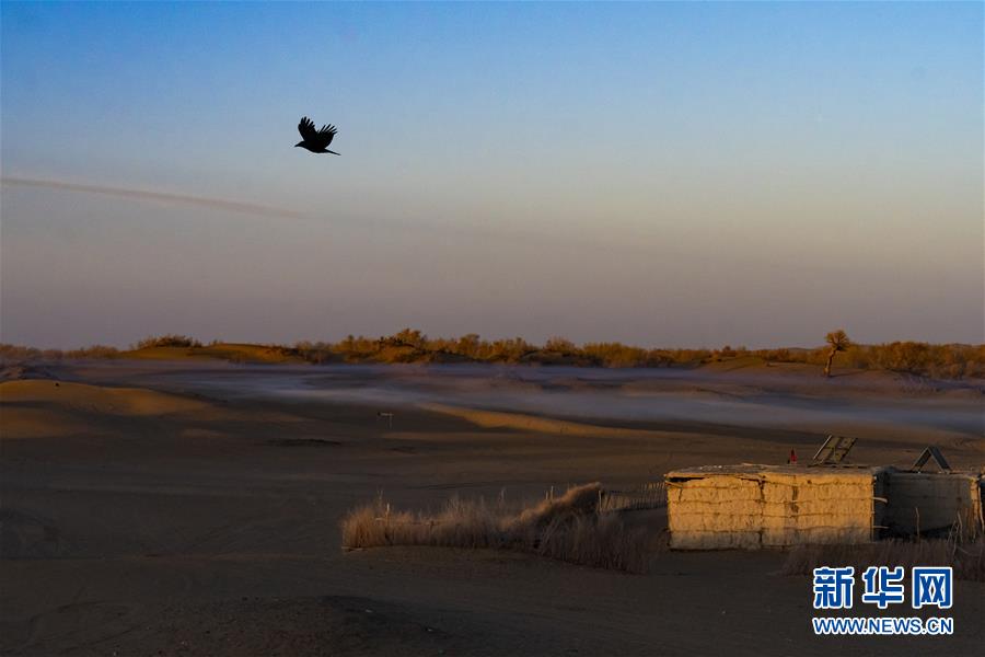 这是在克里雅河沿岸绿洲达里雅布依拍摄的被朝阳照亮的传统民居(11月13日摄)。 新华社记者 沈伯韩 摄
