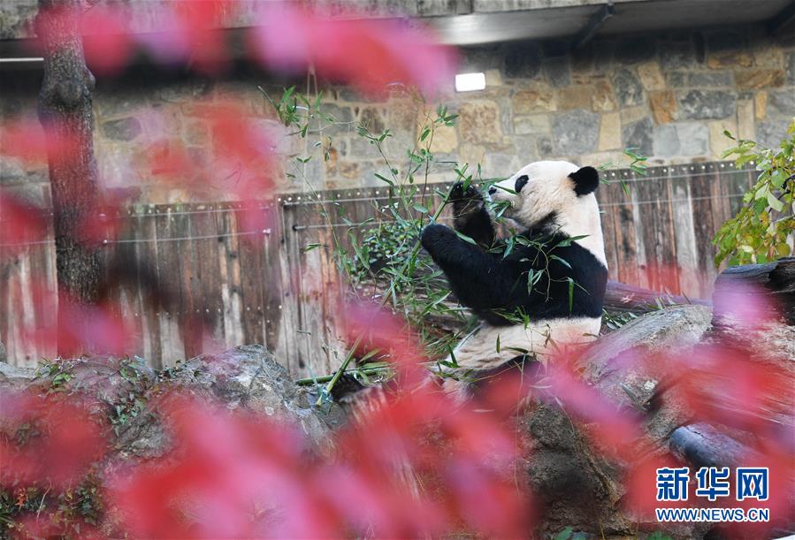 11月19日,在美国华盛顿的美国国家动物园,大熊猫“贝贝”享用启程回国前的最后一顿“早餐”。在华盛顿美国国家动物园出生和长大的雄性大熊猫“贝贝”19日结束旅美生涯,踏上回国旅程。 新华社记者 刘杰 摄
