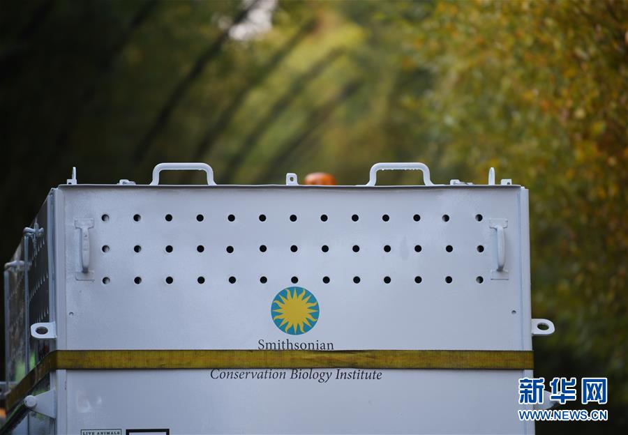 11月19日,在美国华盛顿的美国国家动物园,装有大熊猫“贝贝”的箱子被运往卡车,准备前往机场。在华盛顿美国国家动物园出生和长大的雄性大熊猫“贝贝”19日结束旅美生涯,踏上回国旅程。 新华社记者 刘杰 摄