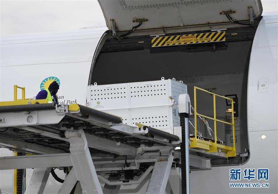 11月19日,在美国华盛顿附近的杜勒斯国际机场,装有大熊猫“贝贝”的箱子被运上飞机。在华盛顿美国国家动物园出生和长大的雄性大熊猫“贝贝”19日结束旅美生涯,踏上回国旅程。 新华社记者 刘杰 摄