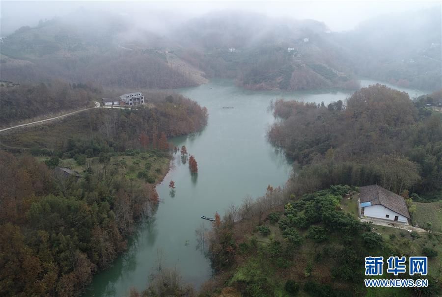 瀛湖晨景(12月5日无人机拍摄)。 冬日清晨,我国南水北调中线工程的重要水源地——位于陕西安康市汉滨区境内的瀛湖呈现一派瑰丽景象。 新华社记者 邵瑞 摄