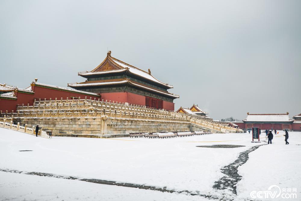 央视网消息(记者 李夏):1月5日傍晚至1月6日晨,北京迎来了新年的第一场雪。周一清晨的故宫再次披上厚厚的积雪,红墙白雪风景美如画。